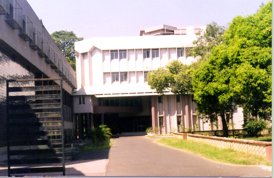 A view from the side of the old central library, towards the new library annexe. The new library now hosts the journal section and the electronic library.