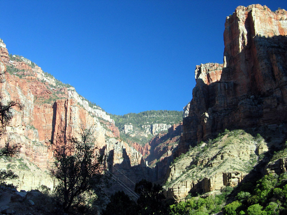 Looking back from the Roaring Rapids, with the Kaibab layers above us. Few miles into the hike. Still in the inner canyon.